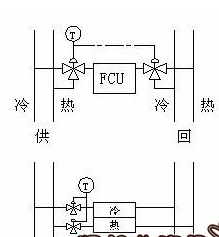 在新風(fēng)風(fēng)機(jī)盤管系統(tǒng)或風(fēng)機(jī)盤管系統(tǒng)中。冷媒和熱媒管道在冬季和夏季運(yùn)行時,采用同一管道系統(tǒng),即冬季采用熱水和回水,夏季采用同一管道輸送冷凍水(和回水)。冷熱源切換在冷水泵房和換熱站進(jìn)行,稱為雙管系統(tǒng)(雙管系統(tǒng))。